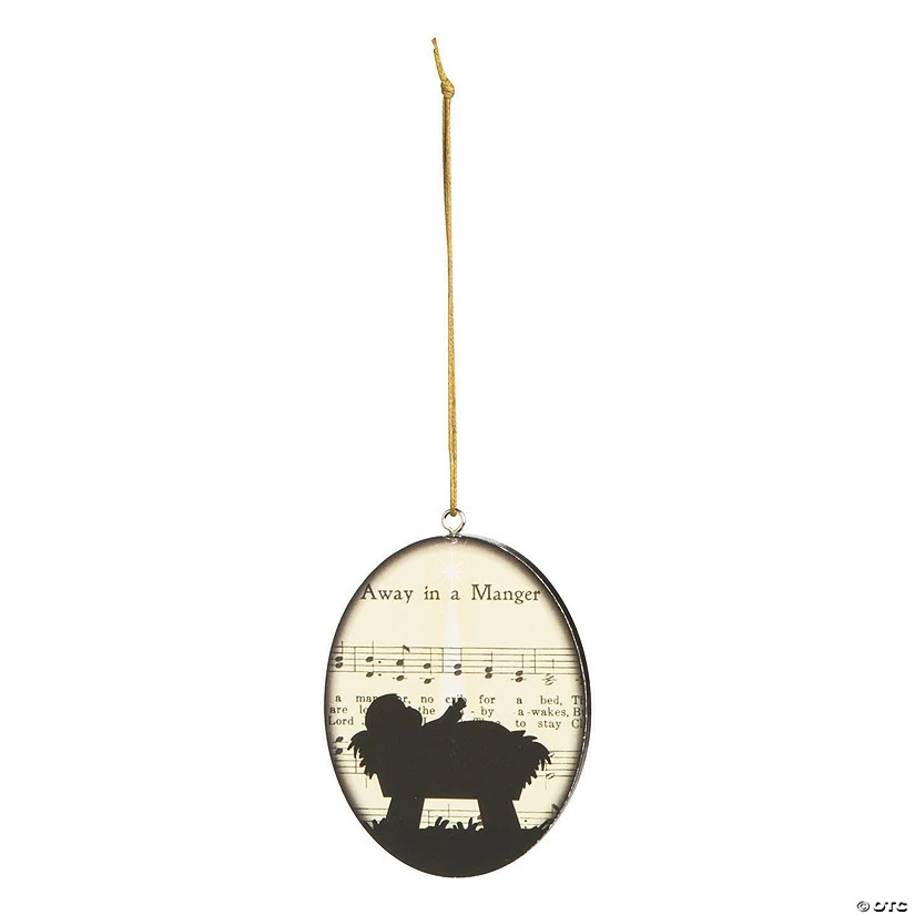 Put the spotlight on a favorite religious Christmas song with these cute Christmas ornaments. A lovely addition to Christmas decorations, these ornaments feature a silhouette of baby Jesus in the manger atop a background of “Away in a Manger” sheet music. Use them on your own Christmas tree or give them away as Christmas gifts. Wood. 2 1/4″ x 3″ ยฉ OTC