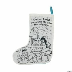 Featuring a fun Nativity scene, these Color Your Own Nativity Christmas Stockings make a great Christmas party activity for home or the classroom. They’re printed with the manger scene and the words “God so loved the world He gave His only Son.” Canvas. 10″ Permanent markers sold separately online. ยฉ OTC