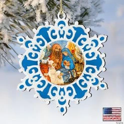Brand new ๐ฅ Designocracy Nativity Snowflake Wood Ornaments Set of 2 G.DeBrekht Inspirational ๐