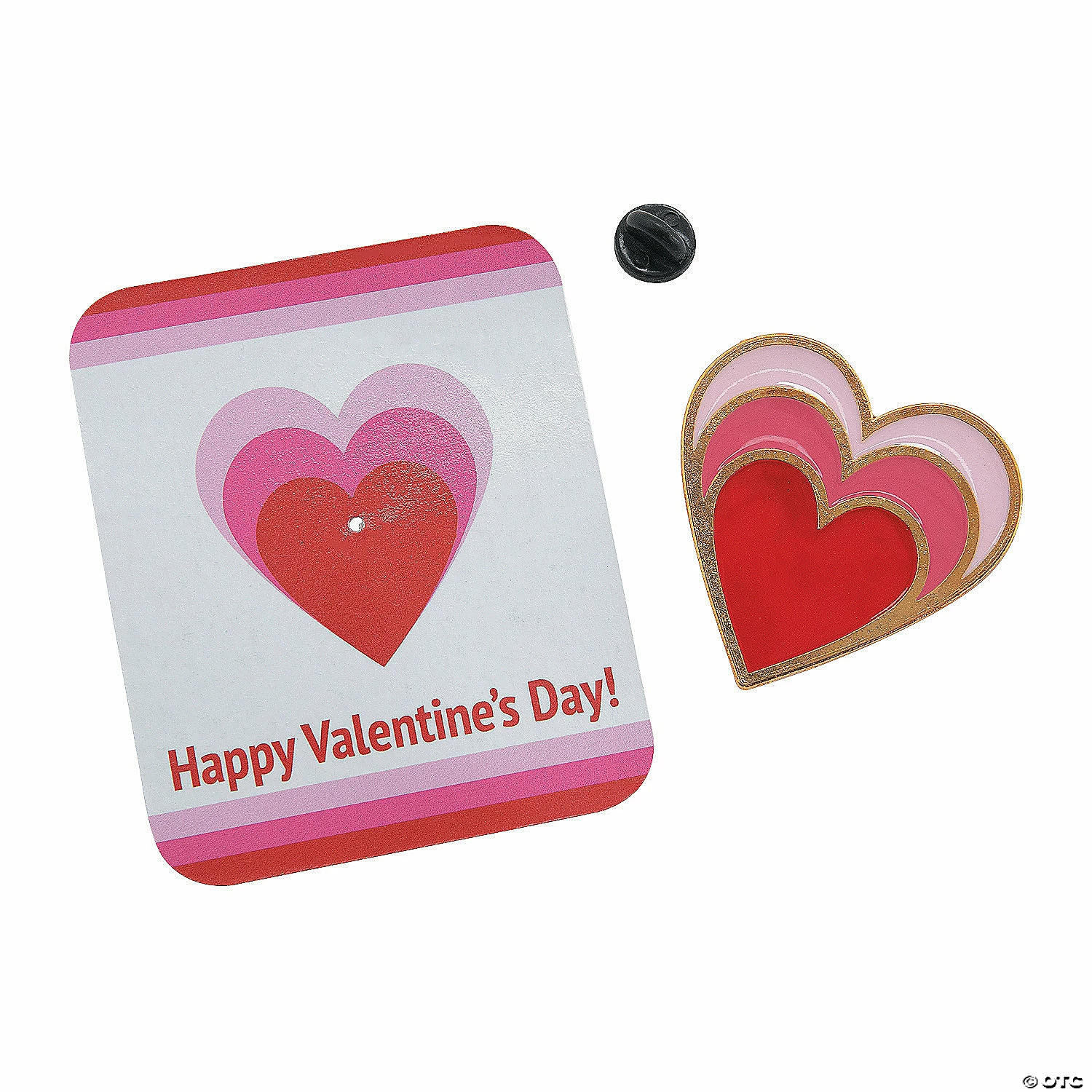 Wish someone special a happy Valentineβs Day with a lovely heart pin! These pins are on cards with Valentineβs Day messaging and a to/from space. Ideal for classroom Valentineβs Day handouts or prizes, these pins are also a good idea for students to give to classmates instead of sugary candy Valentines. Metal. 1 3/4″ pin on 2 1/2″ x 3″ cardstock card. Includes To/From space. © OTC