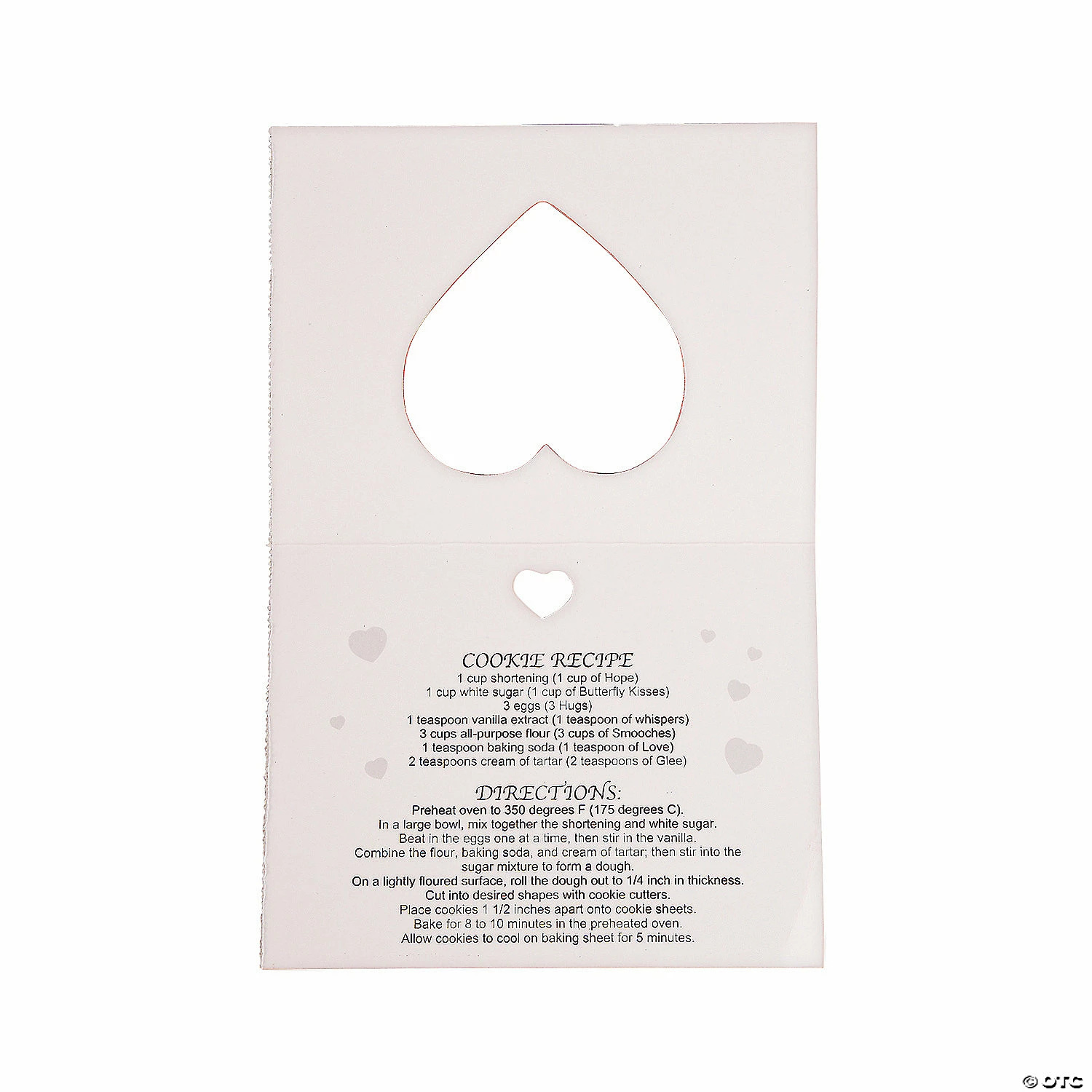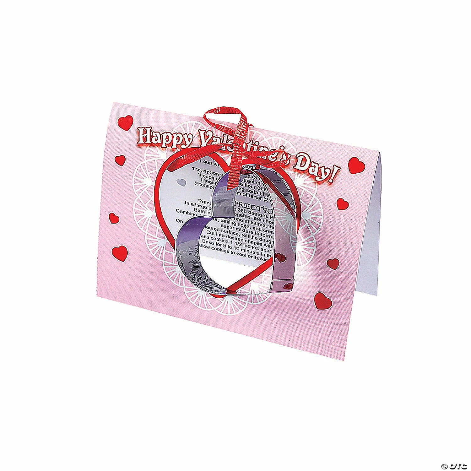Sweet treats for Valentineβs Day! These heartfelt Valentine’s Day cards make a fun goody for anyone who loves to bake cookies. Write a short Valentine’s Day message on the blank space inside. Each 5 1/2″ card with recipe and baking instructions includes a 2 1/2″ heart-shaped metal cookie cutter. Simple assembly required. Β© OTC