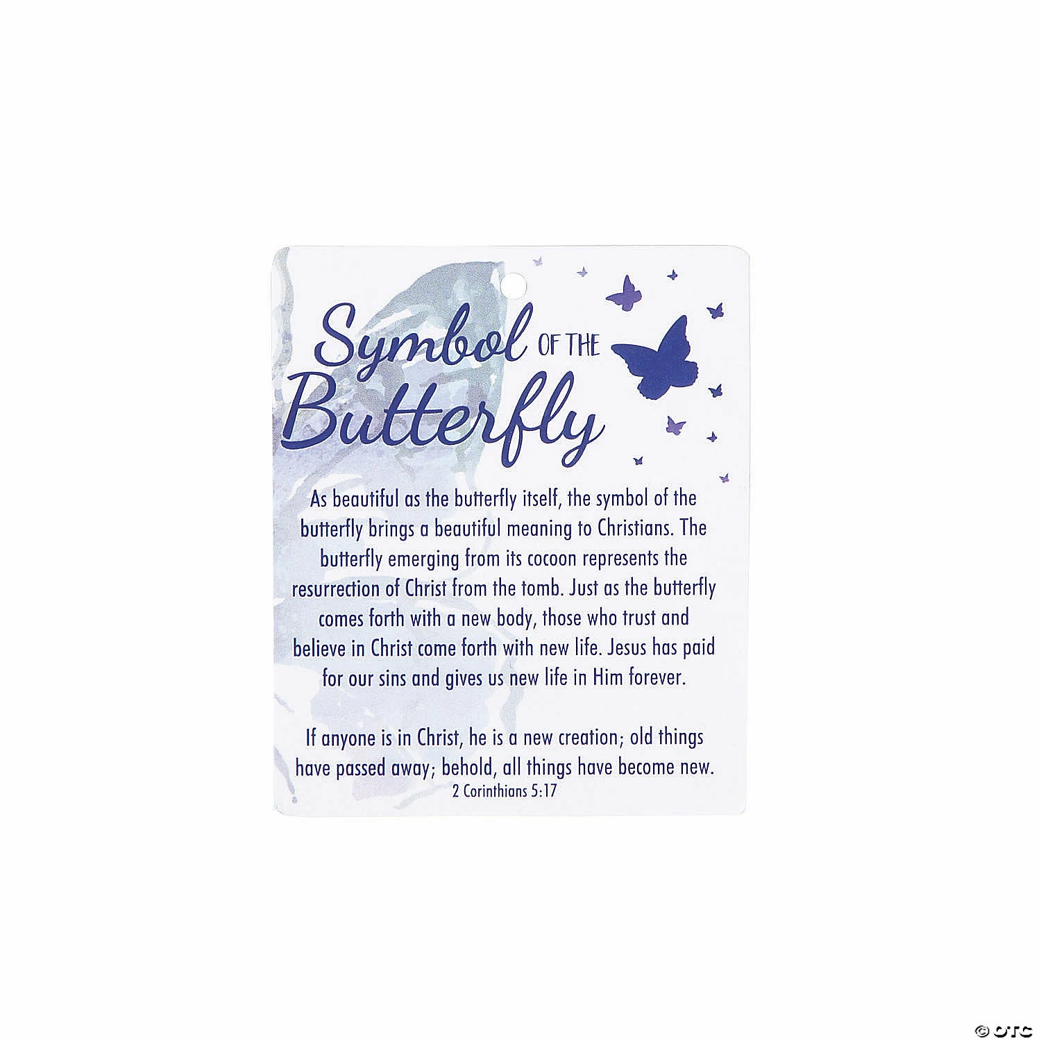 Did you know butterflies have such a beautiful religious symbolism? These butterfly ornaments include cards explaining how a βbutterfly emerging from its cocoon represents the resurrection of Christ.” With their religious message, these keepsake ornaments make excellent Christmas or Easter gifts! Or, hang them with other religious ornaments to decorate for Christmas or Easter. Includes 3″ card with satin cord. Ceramic. 3 1/2″ diam. © OTC