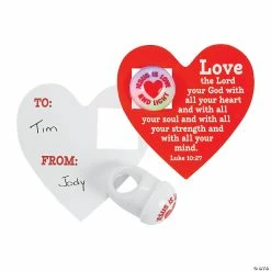 Share Jesus’ love this Valentine’s Day season with this light-up ring and Valentine’s Day card set. Attach the ring to the card after you fill out who the recipient is from and they’ll have a fun, inspirational Valentine’s Day accessory! The ring is printed with “Jesus is Love and Light”. Includes 12 rings and 12 cards. Cards include To/From space. Silicone ring, 1 1/2″; cardstock card, 3″. Includes batteries. Simple assembly required. © OTC