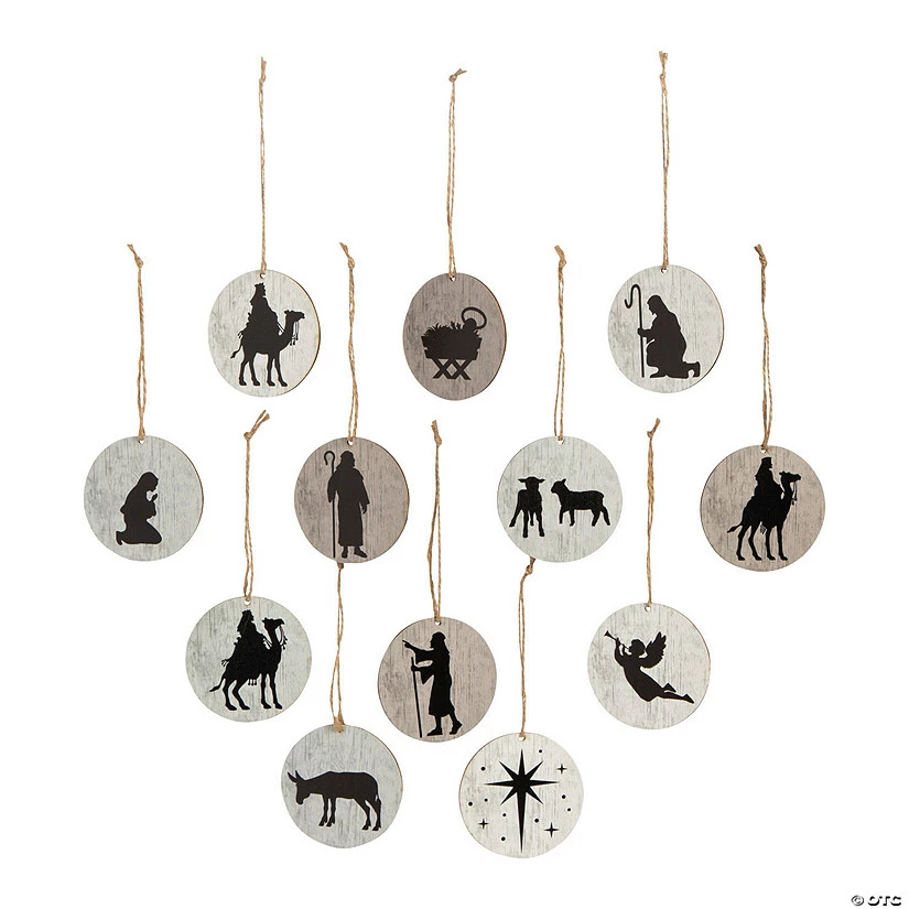 Wholesale โ๏ธ Religious Nativity Character Silhouette Wood ๐ Christmas Ornaments – 12 Pc. ๐